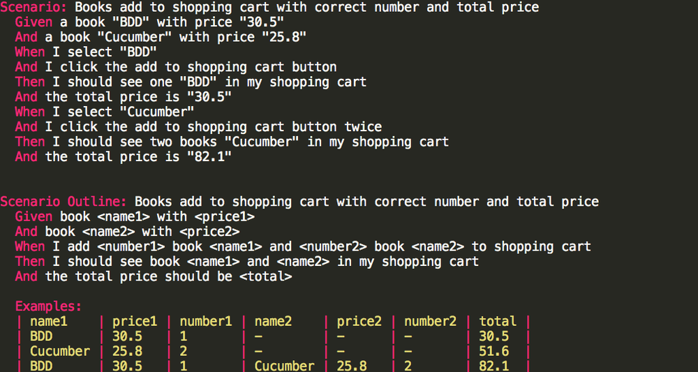 - THEN从句用“应该…(should be…)”来描述一种期望的结果,而不用断言(assert),后者与测试关联更紧密