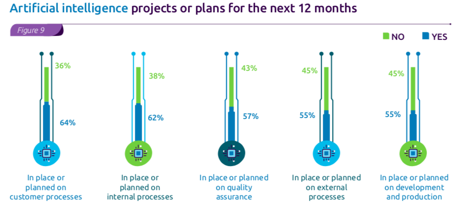 - 45%的受访者在测试中采用AI做智能自动化