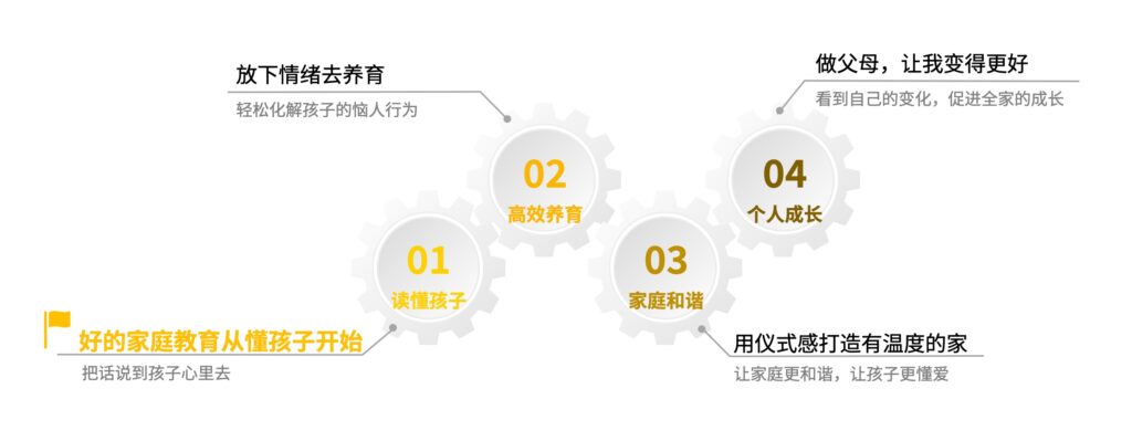 我这里有一系列的精品课程,从读懂孩子、高效养育、家庭和谐、个人成长四个维度,全方位帮你打造科学养育的系统。
